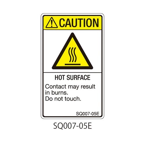 セフティデンキ SQシリーズ 注意ラベル 縦型 英文 高温注意 1式(5枚×5シート入) SQ007−05E 1式 A028-6921