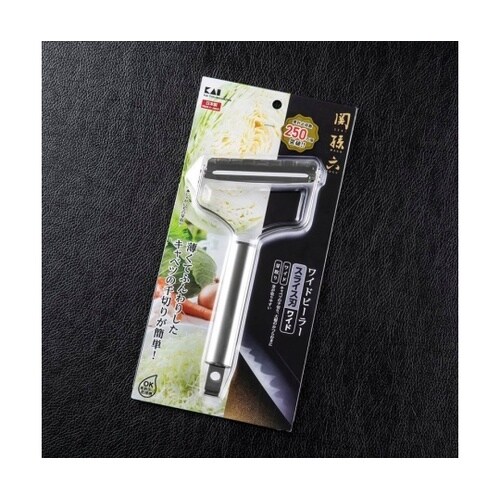 オールステンレス性のワイドピーラー。貝印ならではの鋭い切れ味で、楽にスピーディーに、美味しい千切りキャベツができます。 |
