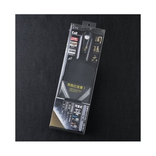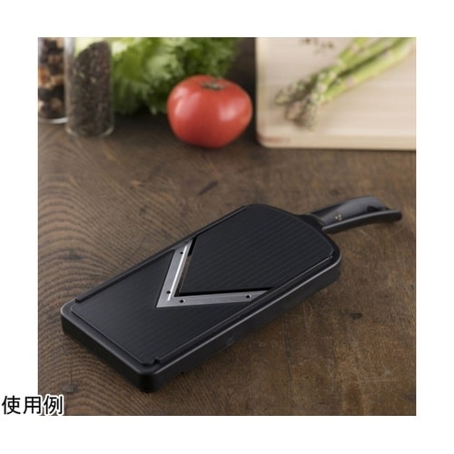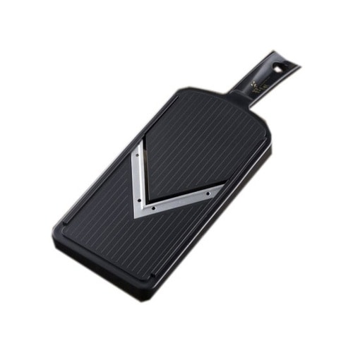 関孫六Vスライサーに厚み調節機能を搭載。プレートが刃に対して平行に稼動することで従来より均一な厚み調節を実現しました。ハイカーボン材採用で切れ味長持ち、指ガード付です。 |