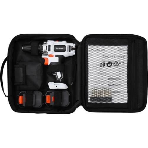 軽量でハイパワーのソフトケース付き充電式ドライバドリルです。ドライバドリルは、DIY初心者の方におすすめです。スピード調整機能で低速と高速の2段階に切り替えが可能です。 |