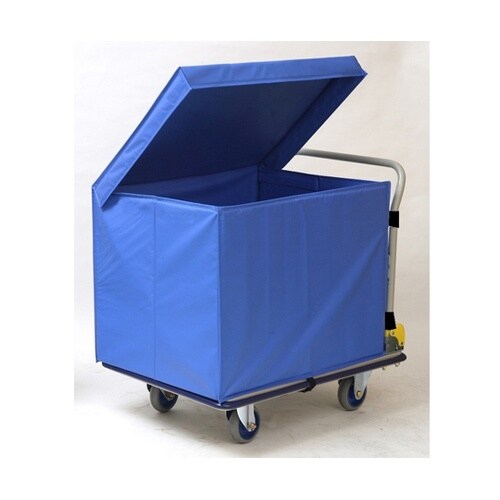 頑丈なスチール製!ハンドル折りたたみ式ですので、省スペース化に役立ちます。指づめ防止イエローキャップ付き。大小不揃いの物を一度に運ぶのに便利な屋外用折りたたみ収納箱付(蓋付)。 |