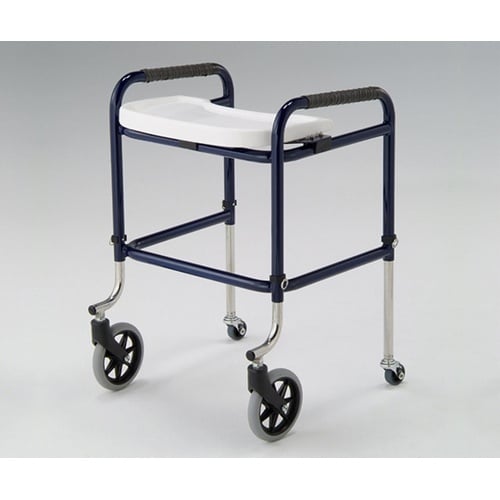 移動手段が選べる屋内向け歩行器トレー装着タイプなので日常生活の幅が広がります。後輪には荷重をかけるとストッパーになるセルフブレーキキャスターが付いています。コンパクト、軽量タイプの固定型歩行器。 |