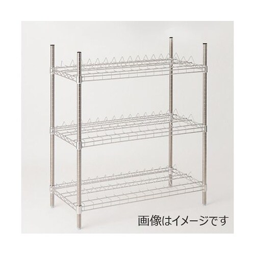 キャリアテープ保管の為の傾斜と形を持つ専用シェルフ。リールサイズφ180mmとφ300mm用の2タイプ。SUS304(18−8)ステンレスワイヤーシェルフ。 |