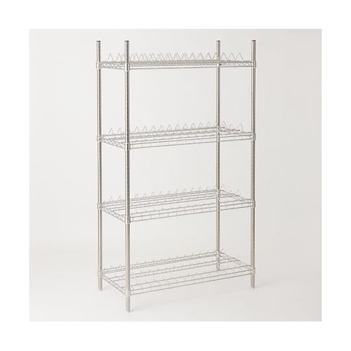 キャリアテープ保管の為の傾斜と形を持つ専用シェルフ。リールサイズφ180mmとφ300mm用の2タイプ。SUS304(18−8)ステンレスワイヤーシェルフ。耐荷重43kg/棚1段。 |