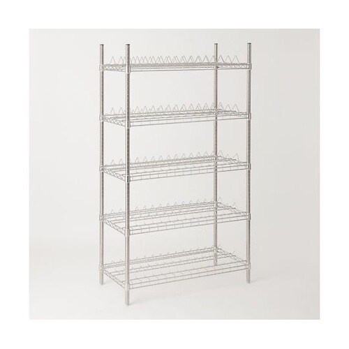 キャリアテープ保管の為の傾斜と形を持つ専用シェルフ。リールサイズφ180mmとφ300mm用の2タイプ。SUS304(18−8)ステンレスワイヤーシェルフ。耐荷重43kg/棚1段。 |