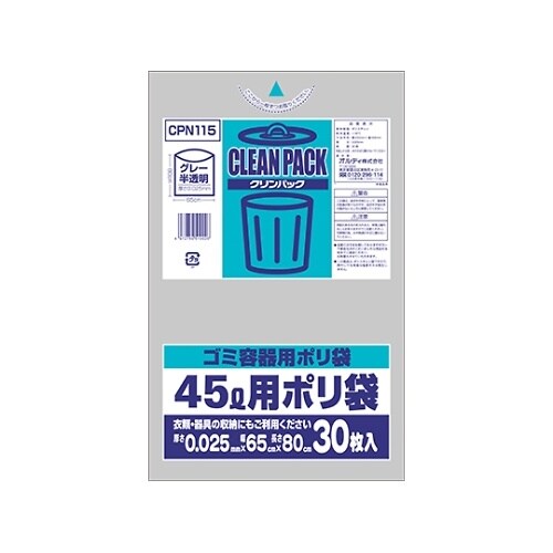 オルディ クリンパック45L グレー半透明 1ケース(30枚×25パック) CPN115 1箱 A029-5598