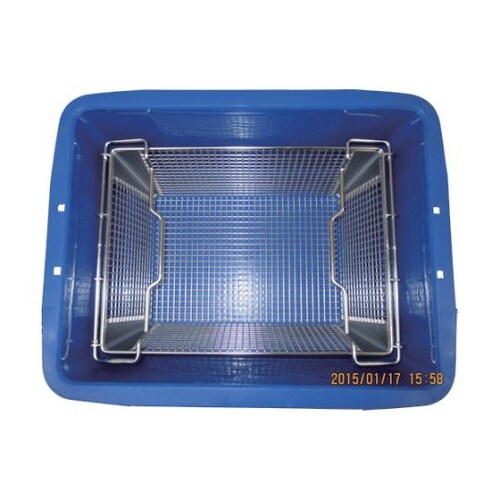 8mm以上の大きさの物のストック・洗浄作業が可能です。足付により一度水切りした液体が底に触れず衛生的です。