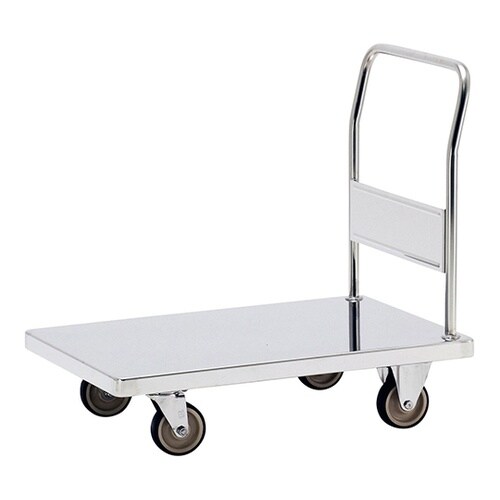 キャスター部を除く全ての部品はSUS304製ですので、サビや汚れに耐え清潔にご利用いただけます。ハンドルは溶接により固定され、グラつきも無い為、始動の力が確実にキャスターに伝わります。