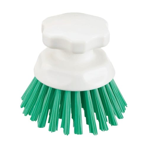 高温滅菌と薬品消毒に耐えうるハンドブラシ。力を入れやすい形の取っ手が、こびり付きや頑固な汚れに効果的。