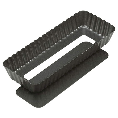 スイーツ作りが楽しくなるデザイン自在の長方形タルト型底取タイプなので型はずしが簡単鉄製なので熱伝導がよく、シリコーンポリエステル樹脂焼付塗装なので型離れしやすく、後片付けもラクラク。 |