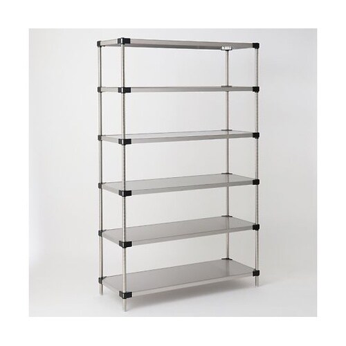 SUS430(18−0)ステンレス棚を使用。細かく物品の収納・保管、作業台に最適。耐荷重180kg。ポールはSUS430(18−0)ステンレス製。 |