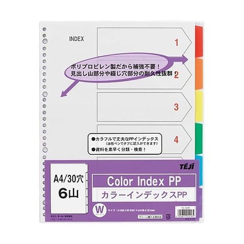 カラーインデックスPP A4縦30穴6山 5組 IN−3406x5 1パック