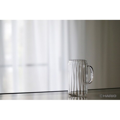ビール缶型の耐熱ガラス製グラス。ビールの 350mL 缶がちょうど入るサイズです。本体がモールグラスになっており、ガラスの美しさが際立ちます。 |