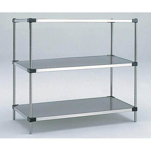 SUS430(18−0)ステンレス棚を使用。細かく物品の収納・保管、作業台に最適。耐荷重180kg。ポールはSUS430(18−0)ステンレス製。 |