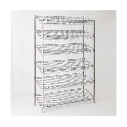 物品の出し入れが容易で、視認性に優れる傾斜棚(傾斜角30°、深さ100mm)。ディスプレイ用什器にも適します。ポールはSUS304(18−8)ステンレス製。キャスター取付時総耐荷重200kg。 |