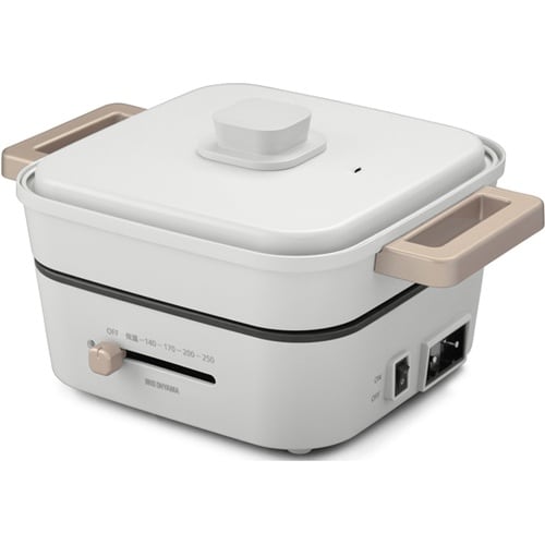 食卓に映えるコンパクトなマルチグリルなべです。プレートが2枚(深なべ・平面プレート)と3枚(深なべ・平面プレート・たこ焼きプレート)付きがあり、カラーもライトグレーとオレンジの2色があります。 |