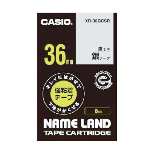カシオ ネームランド用強粘着再剥離黒文字銀テープ36mm XR−36GCSR 1個 A02A-5491