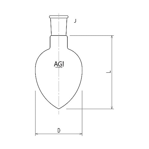 セミ・ミクロサイズの梨フラスコです。L寸法は目安寸法です。