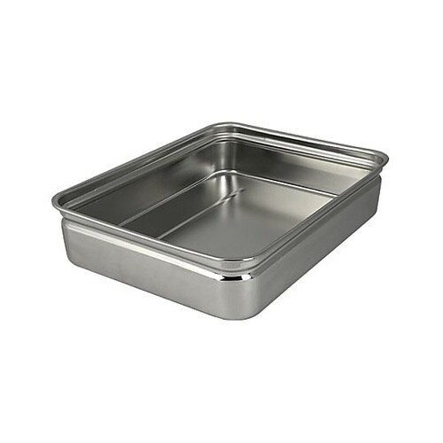 食品工場、給食センターなどで食材や料理の運搬、保管に広く使われているバットです。食材や料理を入れた状態で積み重ねができます。耐久性と耐食性に優れたステンレス製です。 |