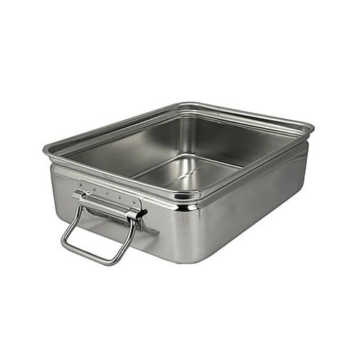 食品工場、給食センターなどで食材や料理の運搬、保管に広く使われているバットです。食材や料理を入れた状態で積み重ねができます。可動取手付です。耐久性と耐食性に優れたステンレス製です。 |