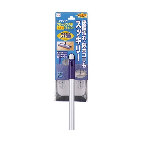 フローリング用のマルチワイパーです。皮脂汚れ・砂ボコリもスッキリ!付属の水拭き用クロスは、力を入れずに汚れが取れる立体メッシュ仕様。 |