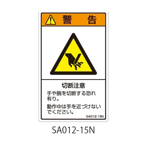 セフティデンキ SAシリーズ ISO警告ラベル 縦型 和文 切断注意 1式(5枚×5シート入) SA012−15N 1式 A02C-1840