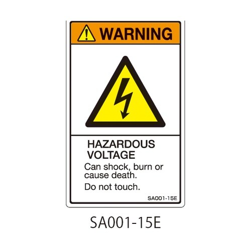 セフティデンキ SAシリーズ ISO警告ラベル 縦型 英文 電圧注意 1式(5枚×5シート入) SA001−15E 1式 A02C-1845