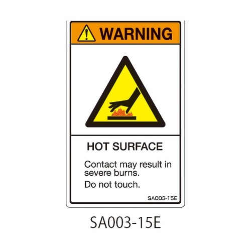 セフティデンキ SAシリーズ ISO警告ラベル 縦型 英文 高温注意 1式(5枚×5シート入) SA003−15E 1式 A02C-1846