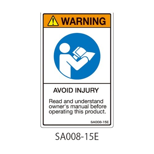 セフティデンキ SAシリーズ ISO警告ラベル 縦型 英文 ケガに注意 1式(5枚×5シート入) SA008−15E 1式 A02C-1848