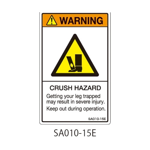 セフティデンキ SAシリーズ ISO警告ラベル 縦型 英文 挟み込み注意 1式(5枚×5シート入) SA010−15E 1式 A02C-1850