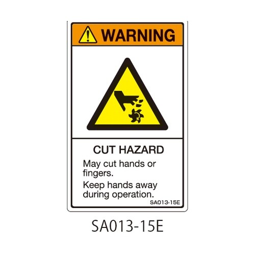 セフティデンキ SAシリーズ ISO警告ラベル 縦型 英文 切断注意 1式(5枚×5シート入) SA013−15E 1式 A02C-1851