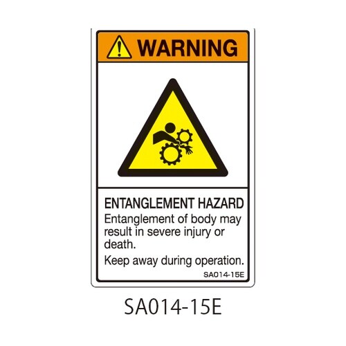 セフティデンキ SAシリーズ ISO警告ラベル 縦型 英文 巻き込み注意 1式(5枚×5シート入) SA014−15E 1式 A02C-1852