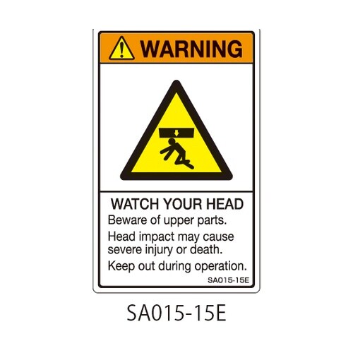 セフティデンキ SAシリーズ ISO警告ラベル 縦型 英文 頭上注意 1式(5枚×5シート入) SA015−15E 1式 A02C-1853