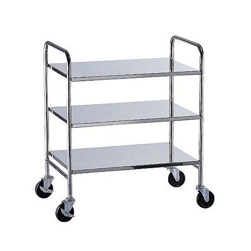 18−8衛生フラットワゴン 3段ゴム車