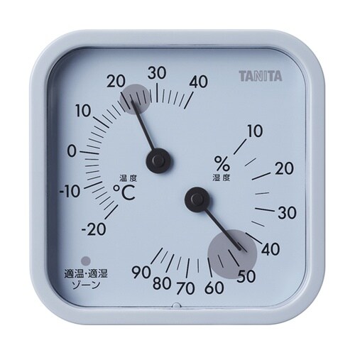 本体背面にはマグネット、フック穴がついているので、置き掛け自由。空調管理の目安になるゾーン付き。 |