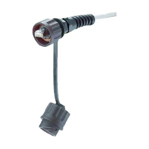 IP67適合の耐水防じん性を持つ産業用イーサネットコネクタです。未接続時のIP67適合の耐水防じん性を維持する保護キャップ付です。