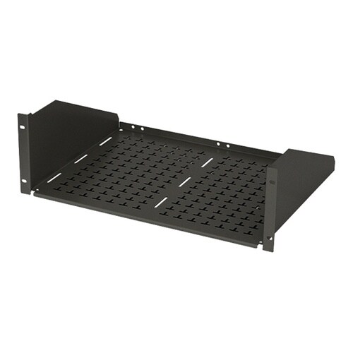 19インチマウントタイプの収納棚でJIS規格に準拠しています。T字形の穴が空いているため、放熱効果があります。 |