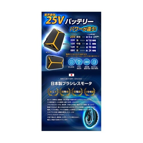 【25V 胸スイッチ無し用】デバイスフルセット(25Vバッテリー×1、25V22V共通ファン×2、25V22V共通充電器×1、25V用ケーブル×1)ファンユニット BR−2500 1組