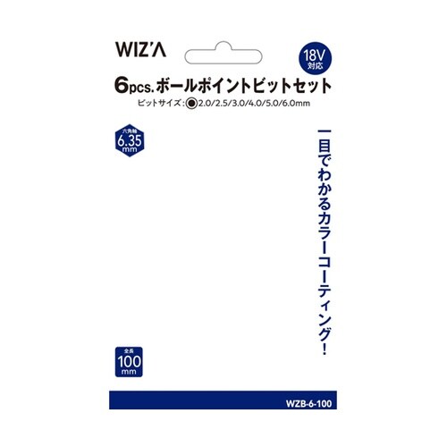 ボールポイントビットセット 6本組 レッド 100mm WZB−6−100 1セット