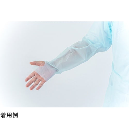 防水性が高い使い捨てプラスチックガウン。エンボス加工でまとわりつきにくく、手首の露出を防ぐ親指フックタイプ。 |