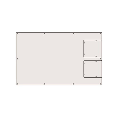 RSRシリーズ用の天板です。天井配線ができるように2つの配線穴(蓋付)を設けています。配線穴が2つあることで、通信用と電源の配線を分けることができます。 |