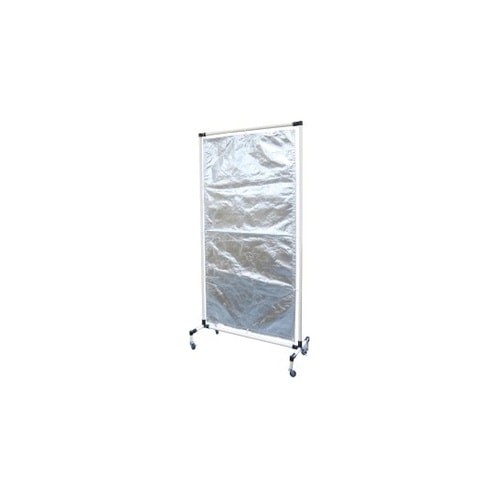 不燃素材で輻射熱97%カットを実現した特殊遮熱シートのキープサーモウォールスペシャルを利用した遮熱・溶接遮光フェンスです。工場内における炉や機械などの熱い熱源を遮りたい時に適しています。 |
