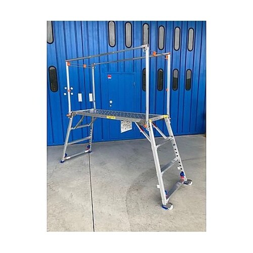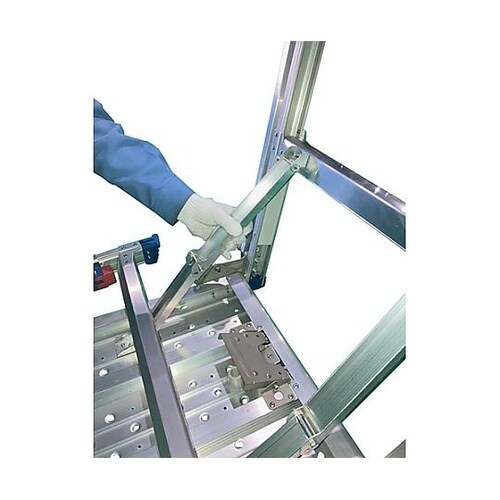 仮設工業会認定品アルミ合金製各伸縮脚は25mmピッチで調整可能天板端部を囲む突起を追加することにより、踏み外しによる事故を防止し、安全性の向上化。 |