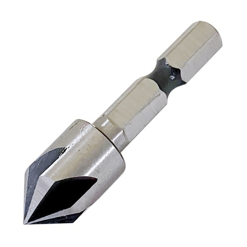 皿ビスの面取り、バリ取り等にご使用頂けます。5枚刃できれいに面取り作業可能です。6.35mm六角軸でドリルチャックにワンタッチで着脱可能です。※本来の用途以外で使用しないで下さい。 |