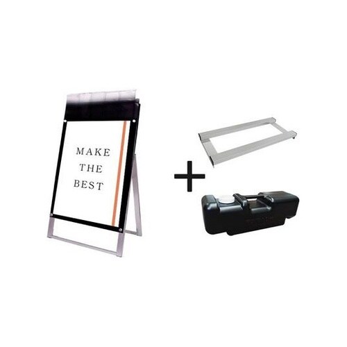 ポスター用スタンド看板パンフレットケース付 A1片面ブラック(屋外用) ウエイトアーム・水タンクセット PSSKP−A1KB−G−3SET 1個