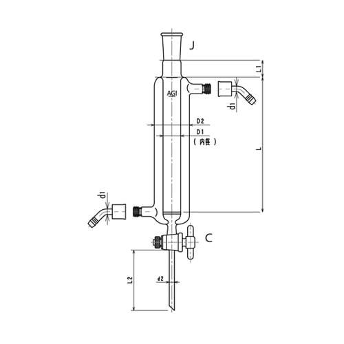 ジョイント付二重管式クロマトカラム(コック・フィルター付) PTFEコック ウォーターコネクター仕様 Φ50L:300 3838−50/300−5L−W 1個