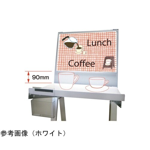本体フレーム:アルミ押出し材・アルマイト仕上(ブラック) | 面板:アルミ複合板(黒)3mm+カードケースA3 | 受け:アクリル板3mm(底面/アル…