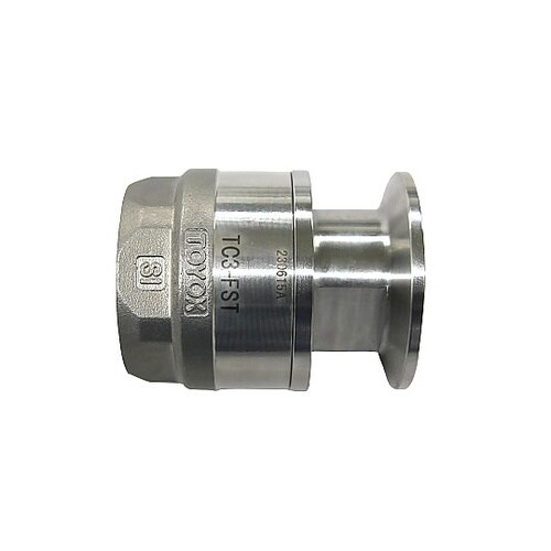 ホースメーカーで設計したトヨックスホース専用フェルール継手(ホース継手)です。※フッソサーモ S100Cホース専用ホース継手です。「衛生的」:液だまりしにくい継手構造で食品・飲料輸送に適しています。 |