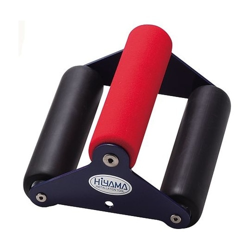 小型ハンディタイプの圧着ローラーです。グリップ部(赤色部分)にはスポンジが巻いてあり、手になじみます。ローラー部は硬質ゴムが巻いてあります。 |