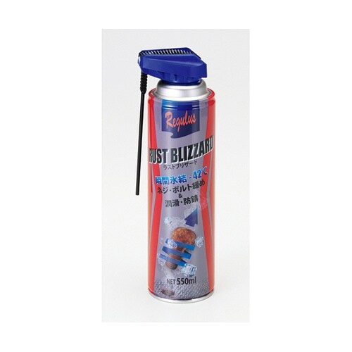ボルト・ナットのなめ防止に。水置換性浸透・防錆効果。−42℃の冷却剤が錆びたボルト・ナットを瞬間収縮させると同時に高性能浸透オイルがミクロの隙間に流れ込んでボルト・ナットを緩めやすくします。 |